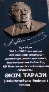 Қазақстанның Еңбек Ері, Мемлекеттік сыйлықтың лауреаты, жазушы-драматург Әкім Тарази тұрған үйге ескерткіш тақта орнатылды.
