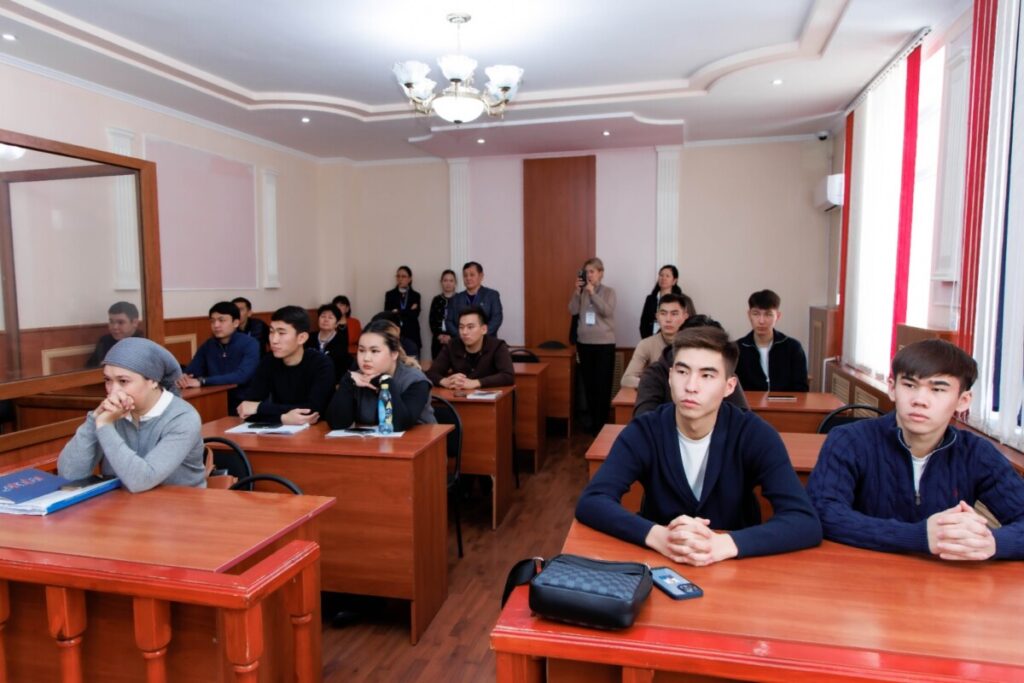 – Бүгінгі ашық сот процесінің негізгі мақсаты – мемлекеттегі заң үстемдігі мен құқықтық тәртіптің маңыздылығын көрсете отырып, студенттердің құқықтық мәдениетін қалыптастыру, жастарды сот жүйесінің қызметімен таныстыру және әділ соттың қоғамдағы рөлін түсіндіру – деді сот отырысын жүргізген судья Шыңғыс Диканбай.