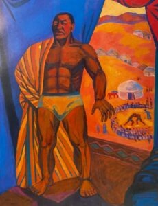 Ханның басын шауып, отырған алтын тағын тас-талқан ете алмай кеткен, еліне, бауырларына сеніп опық жеген, қандыкөйлек досы Исатай батырдан соғыс үстінде тірідей айырылып, енді барар жері, басар тауы қалмаған қайран ақынның, бірақ өлімді де сескенбей, селт етпей күтіп алған, бір елі шегінбей, жаралы жолбарысша соңғы демі біткенше тайталасып, арпалысып өткен батырдың тұлғасын сәтті сомдаған полотнолар өнер әлемінде сирек.