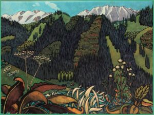 Болат Тұрғынбайдың шығармаларының көбі стилизациялы, декоративтік стильде жазылған. Оны әсіресе «Көкжайлау» туындысынан айқын көреміз. Суретші көрерменнің бар зейінін қара контурлы сызықтармен жазылған қою қара шыршалармен біртіндеп жоғарыға қарай өрлетіп, көкжиектегі таулы алқапқа жетелейтін пейзаждың орталығына аударған. Картинаның алдыңғы бөлігіндегі айқын сызықпен сызылып, әсем иілген үлкейтіліп берілген өсімдіктердің пластикасы көзге бірден түседі. Мұндай жазу мәнері модерндік суретшілердің витражды немесе аппликациялық картиналарының мәнеріне келеді.