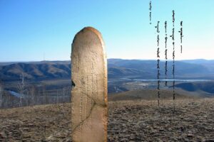 Ертесі жарлық шығарған Шыңғыс қаған арнайы тас ойдырып, Есей мергеннің жебесі тиген бақан түбіне ескерткіш қойдырды. Баяғы бәдізші Өртегей шалдың ұлдары тасты түнімен қашап, төмендегідей жазу жазды: