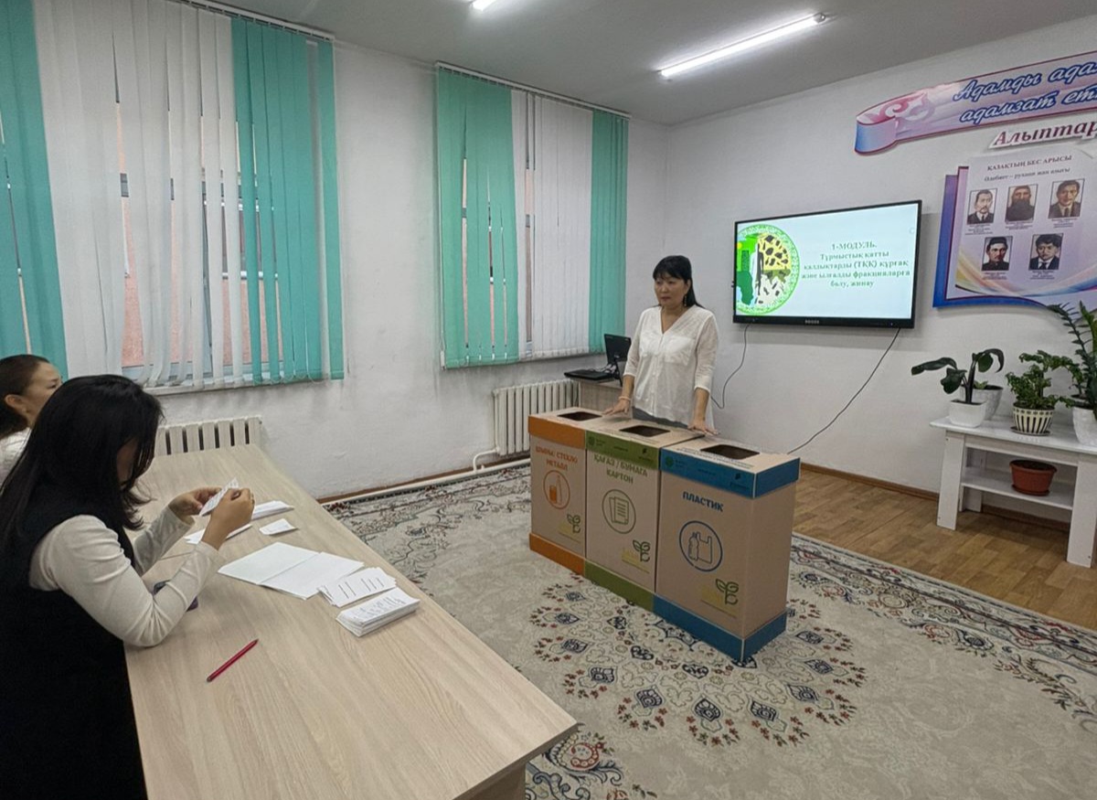 Екінші модульде қағаз, пластик, шыны және металл секілді қалдықтарды сұрыптау жолдары көрсетіліп, қайта өңдеудің тиімді тәсілдері үйретілді. Үшінші модульде қаптама түрлерінің экологиялық ізі мен оларды саналы тұтыну мәселесі қозғалды. Төртінші модульде 3R қағидаты – Reduce, Reuse, Recycle ұғымдары жан-жақты түсіндіріліп, күнделікті өмірде қолдану жолдары ұсынылды. Бесінші модуль EcoQolday цифрлық платформасына арналды. Қатысушылар бұл жүйе арқылы қалдықтарды тапсыруды есепке алу, бақылау және экологиялық жауапкершілікті арттыру мүмкіндіктерімен танысты.