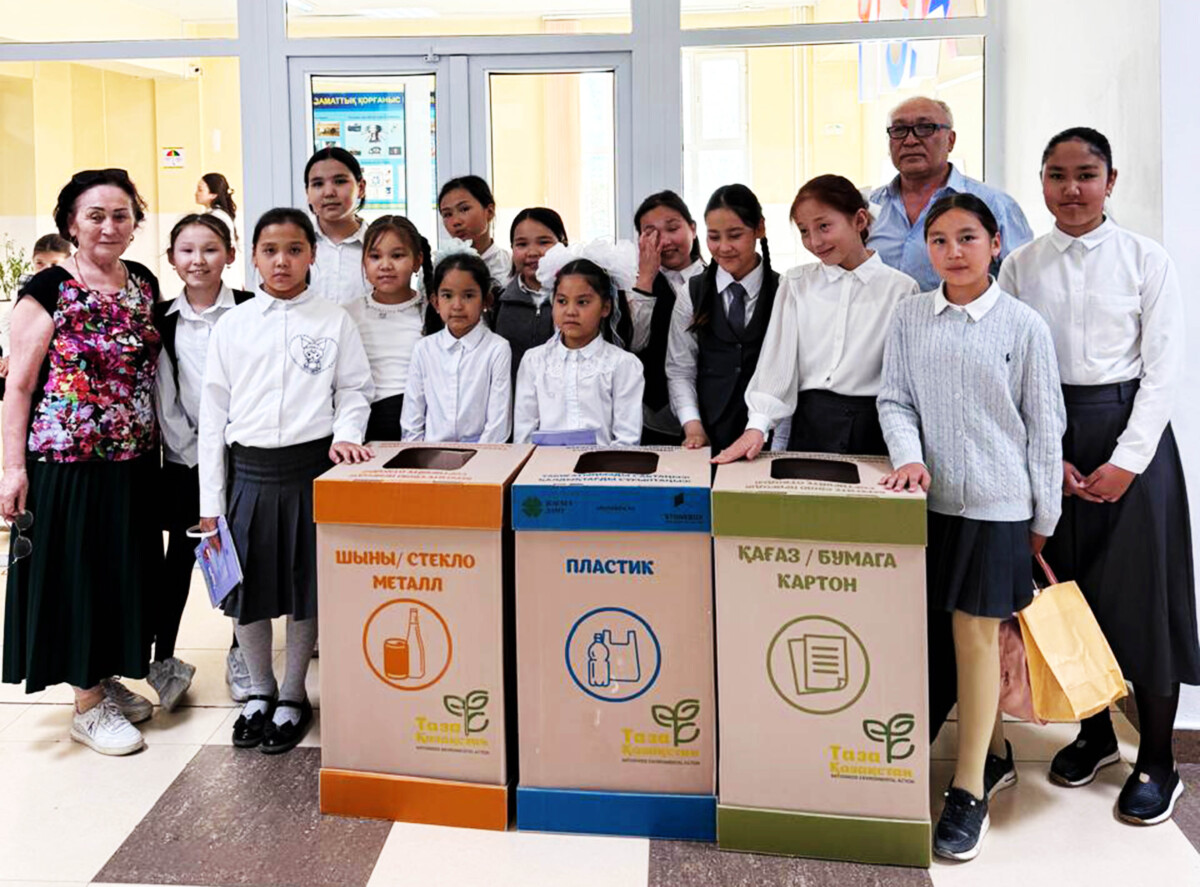Жоба шеңберінде білім беру және материалдық қамтамасыз ету бағыттары да жүйелі түрде іске асырылды. Атап айтқанда, Қонаев қаласындағы 11 мектепте қалдықтарды бөлек жинау үшін әрқайсысы 3 контейнерден тұратын 66 жинақ орнатылып, «қағаз/картон», «пластик», «шыны/металл» фракциялары бойынша жалпы саны 198 арнайы контейнер орналастырылды.