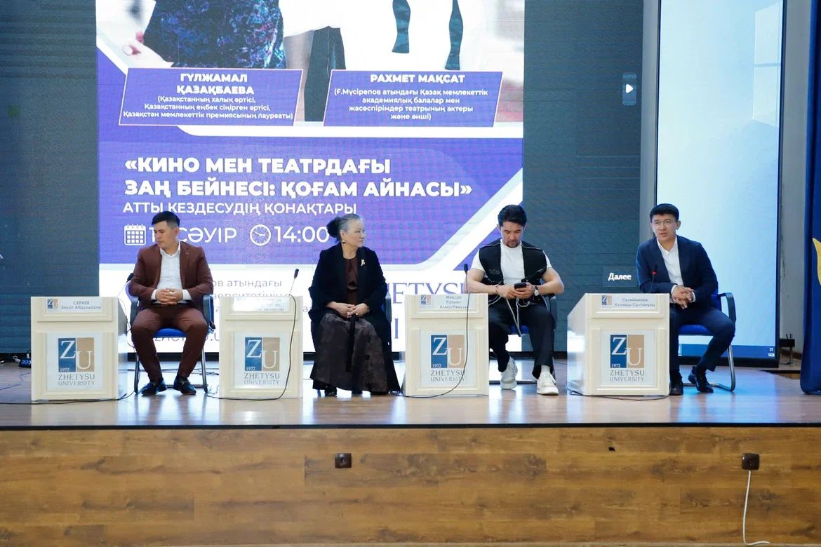 І. Жансүгіров атындағы Жетісу университетінде Заң мен тәртіп қағидасы аясында «Кино мен театрдағы заң бейнесі: қоғам айнасы» атты мазмұнды кездесу өтті. Танымдық іс-шараға Жетісу облысының мәдениет, архивтер және құжаттама басқармасының басшысы Қуаныш Сүлейменов, Қазақстанның халық әртісі, Қазақстанның еңбек сіңірген әртісі, Қазақстан Республикасы Мемлекеттік сыйлығының лауреаты Гүлжамал Қазақбаева, сондай-ақ Ғ.Мүсірепов атындағы Қазақ мемлекеттік академиялық балалар мен жасөспірімдер театрының актеры, әнші Мақсат Рахмет арнайы қонақ ретінде қатысты.