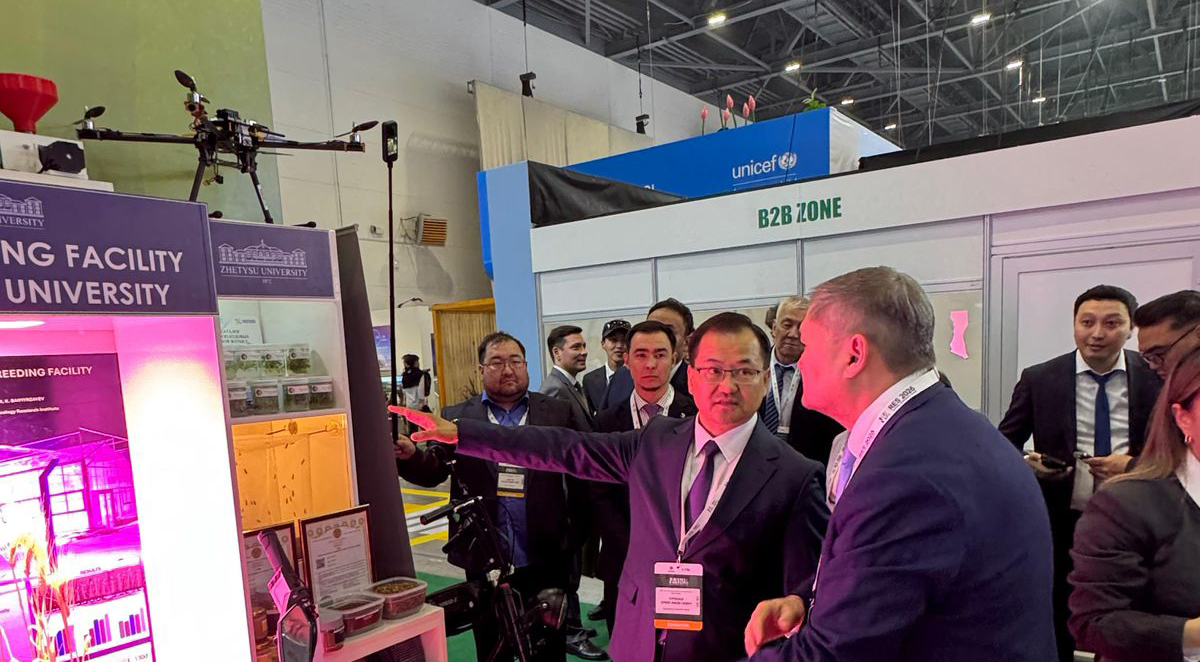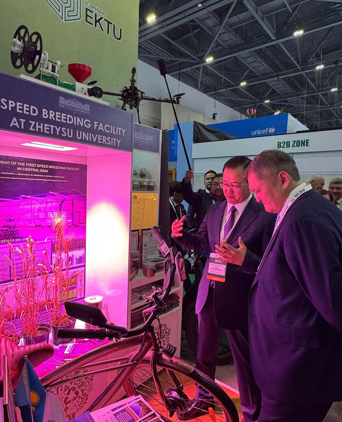 Саммит аясында ұйымдастырылған көрмеде еліміздің жоғары оқу орындары мен ғылыми ұйымдары өз жетістіктерін таныстырды. Солардың қатарында І. Жансүгіров атындағы Жетісу университеті де белсенді қатысып, жасыл технологиялар мен тұрақты даму бағытындағы жобаларын ұсынды. Көрмені аралаған ҚР Ғылым және жоғары білім министрі Саясат Нұрбек Жетісу университетінің жобаларына ерекше тоқталып, олардың ғылыми және практикалық маңызына жоғары баға берді.