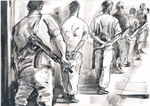 Талдықорғандағы қаңтар қырғынына тұтқиылдан тап болды. Текелідегі мәрмәр қазып жатқан жұмысшылардың арасында қара жұмысқа жегіліп жүрген. Құжатсыз жалақы төлейтін болған соң сонау Алматы іргесіндегі Іргелінің түбіндегі «Құл базардан» жалданып келген болатын. Ақыры мынадай күйге ұшырады… Алаңда ештеңе істемесе де, індете іздеген полиция күн құрғатпай Текеліден келіп алып кетті.
